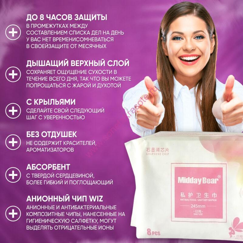 Прокладки гигиенические дневные АНИОН MIDDAY BEAR 245mm ( 4 капли, 8 шт.)
