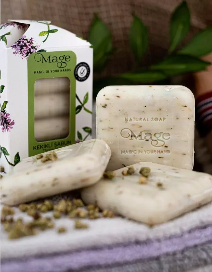 Mage – это натуральное турецкое мыло, созданное для бережного ухода за кожей. Благодаря традиционным рецептам и натуральным компонентам, оно деликатно очищает, питает и увлажняет кожу, сохраняя ее мягкость и здоровый вид. Преимущества натурального мыла Mage: Турецкое качество – изготовлено по традиционным рецептам с натуральными маслами. Мягкое очищение – бережно удаляет загрязнения, не пересушивая кожу. Натуральный состав – без парабенов, силиконов и агрессивных ПАВ. Увлажнение и питание – растительные экстракты и масла заботятся о коже. Деликатный аромат – ненавязчивый, приятный, создающий атмосферу комфорта. Для лица и тела – универсальное мыло, подходящее для ежедневного использования. Гипоаллергенное – дерматологически протестированное, подходит даже для чувствительной кожи. Как использовать: Вспеньте мыло в руках или с помощью мочалки, нанесите на влажную кожу, мягко помассируйте, затем тщательно смойте водой. Состав: Натуральные растительные масла, эфирные масла, глицерин, экстракты трав. Почему стоит выбрать турецкое мыло Mage? Турецкое мыловарение славится своими традициями и качеством. Mage – это идеальное сочетание натуральных ингредиентов, мягкого очищения и приятного аромата, делающее уход за кожей не только полезным, но и приятным. Mage – натуральное турецкое мыло для ежедневного ухода за вашей кожей!